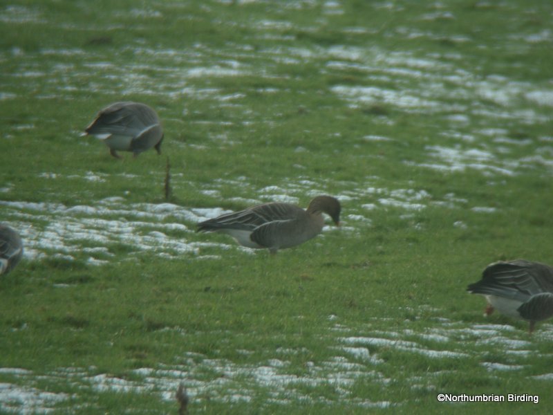 Just further along the Whitefront was soon located in with Greylags , the end os last year I had a single Whitefront in with Greylags at south Woodhorn Flash as well as the ones to the North so it could be this bird, a Greylag with bright orange legs also caught my eye so I will check out the net , did I not read of birds thought to have come from further east ?